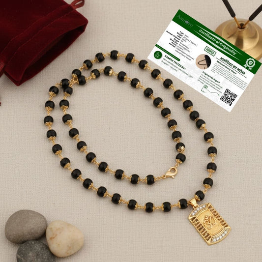 Certified Gold Platted Karungali Malai with Om Engraved Statement Pendant