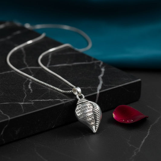 Silver Shri Krishna Shankha Pendant with Chain | Symbol of Purity & Protection