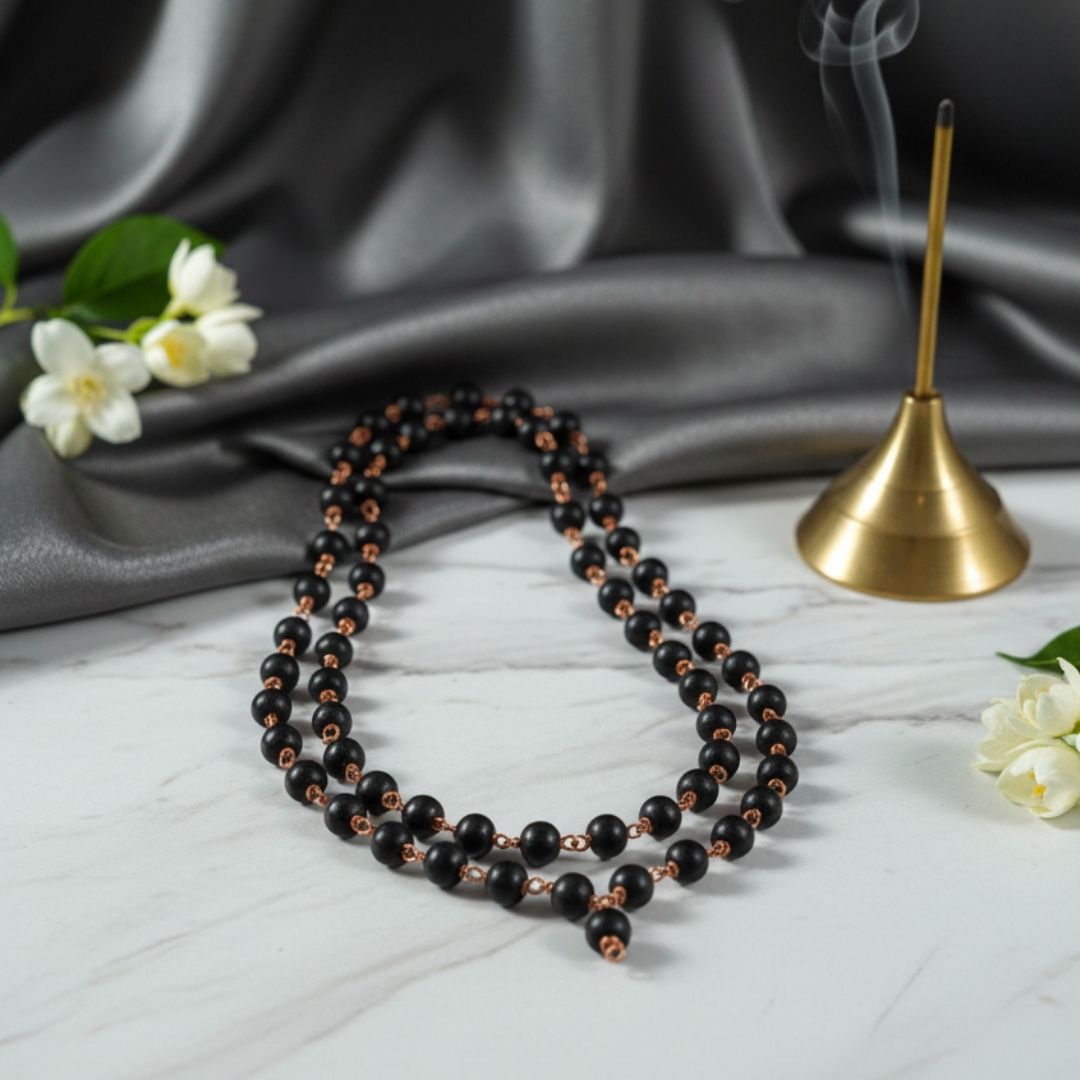 Wearing Karungali malai is believed to bring calmness, emotional control, and mental clarity.