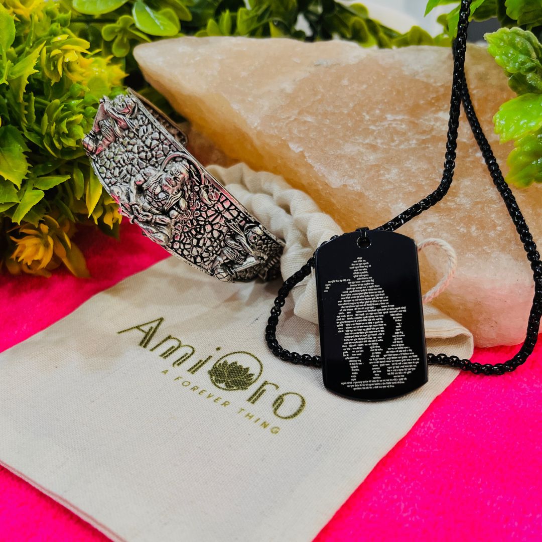 This divine combo includes the Free Hanuman Chalisa Pendant, a beautiful and meaningful accessory with great spiritual significance. The Hanuman Chalisa is a 40-verse prayer that praises Lord Hanuman's qualities and asks for his protection and strength. Wearing the pendant ensures you carry the divine energy of the Hanuman Chalisa wherever you go, keeping you blessed with peace and harmony.