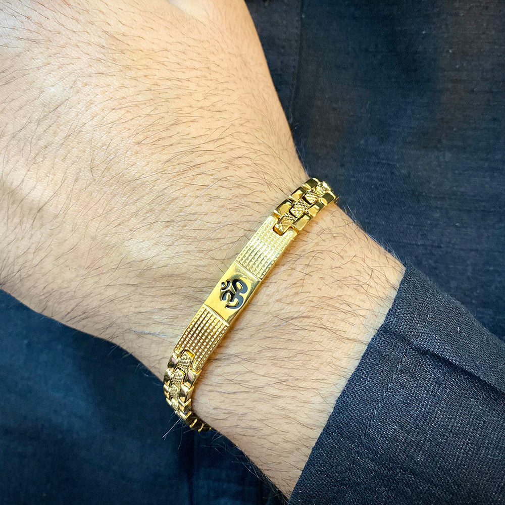 OM CARVING PREMIUM GOLD BRACELET LOOSE FIT WITH DOTTED PATTERN