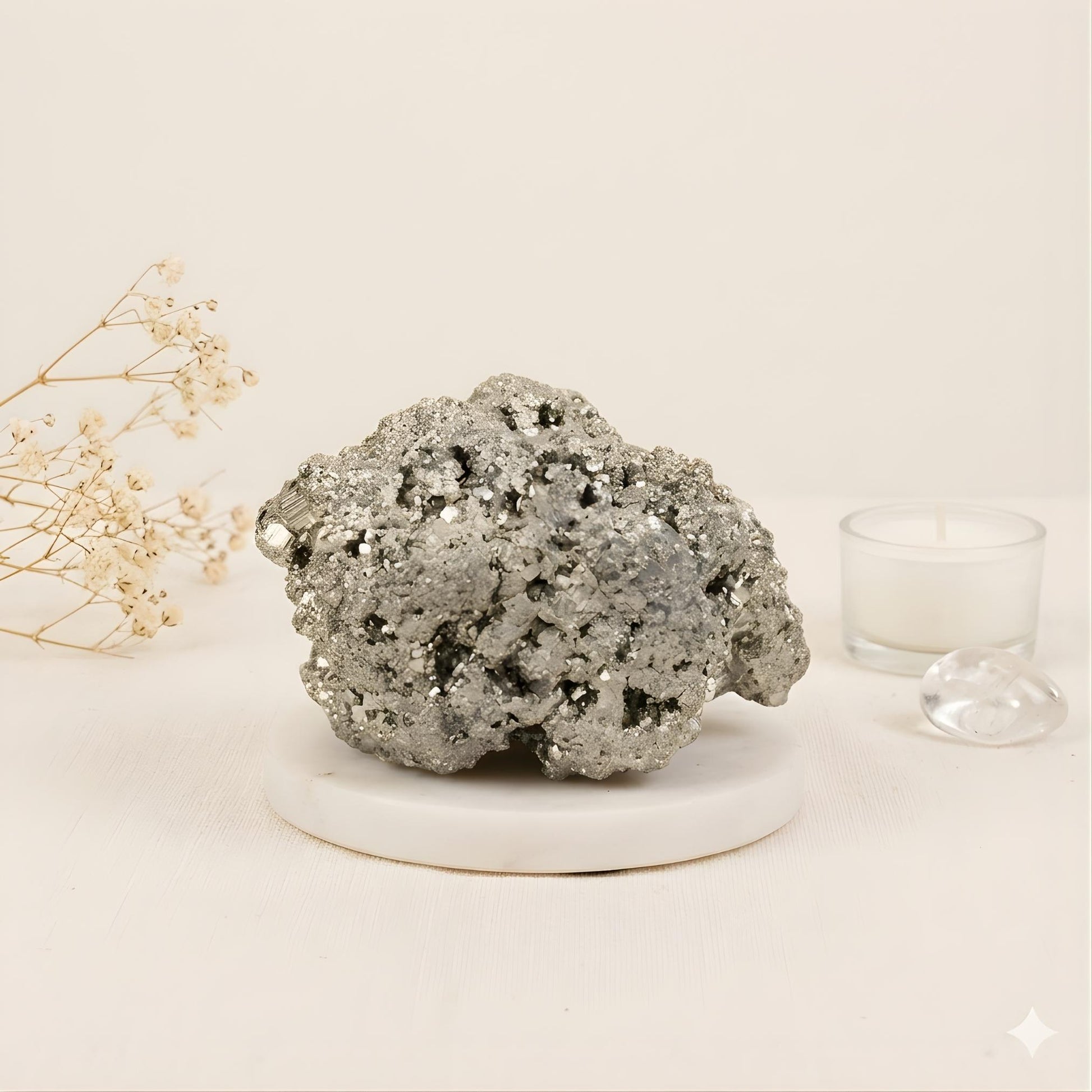 Pyrite is known for its protective properties. It helps shield against negative energies, jealousy, and harmful influences, creating a secure and positive aura.