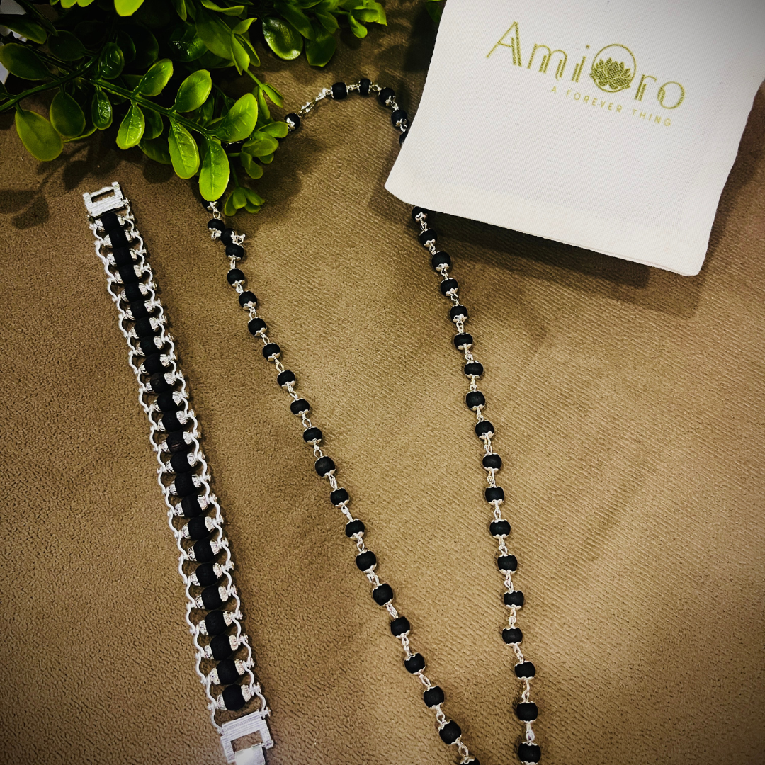 🙏 Silver Plated Karungali Malai and Bracelet Combo 🌻