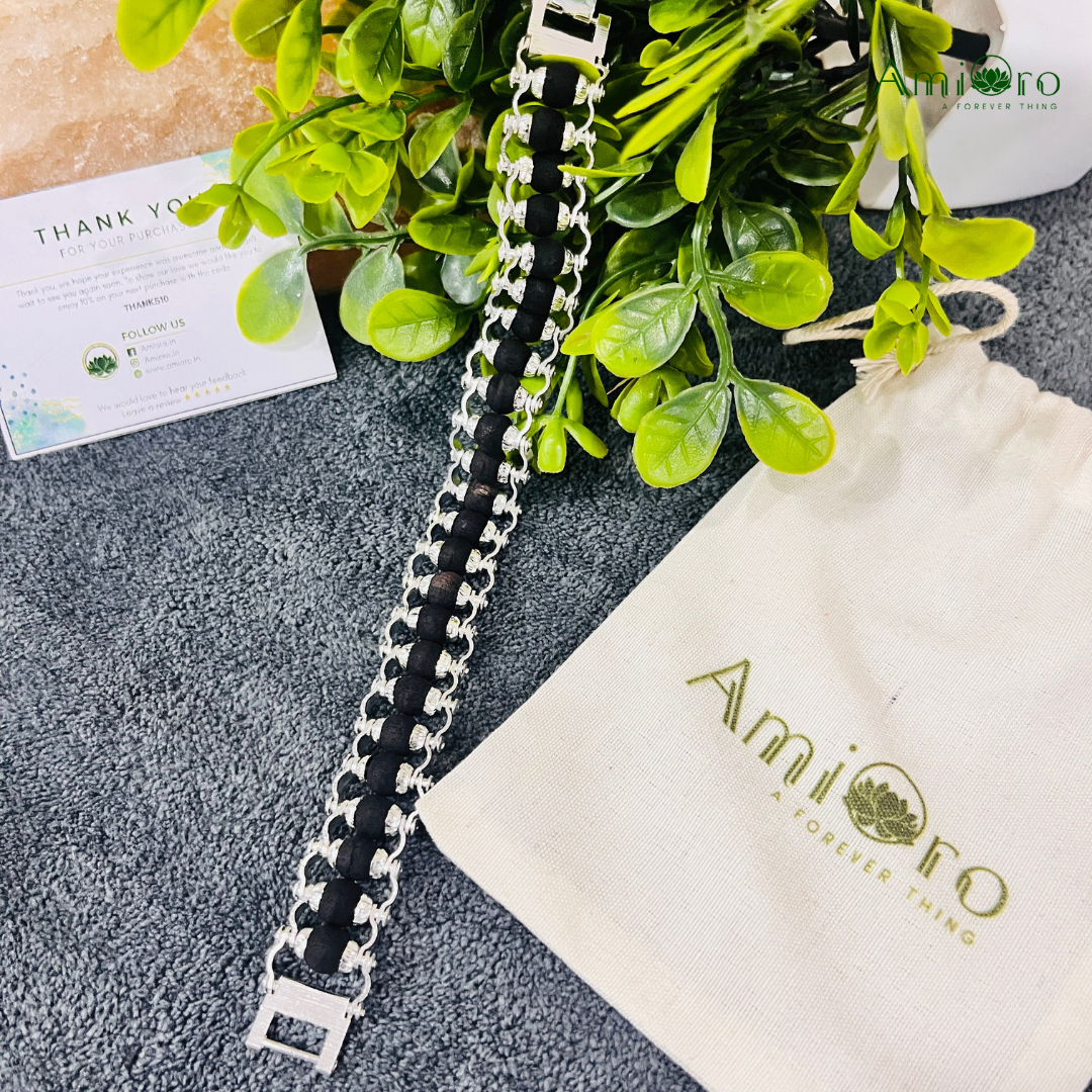 Its silver-plated bracelet with Karungali Mala Karungali Mala is more than an accessory. It's a tangible connection to the Divine. The bracelet is an everlasting reminder of the presence of Lord Murugan and your dedication to the Lord. The exquisite design guarantees you can wear it every day and blends seamlessly into formal and casual outfits while providing spiritual benefit during your day.