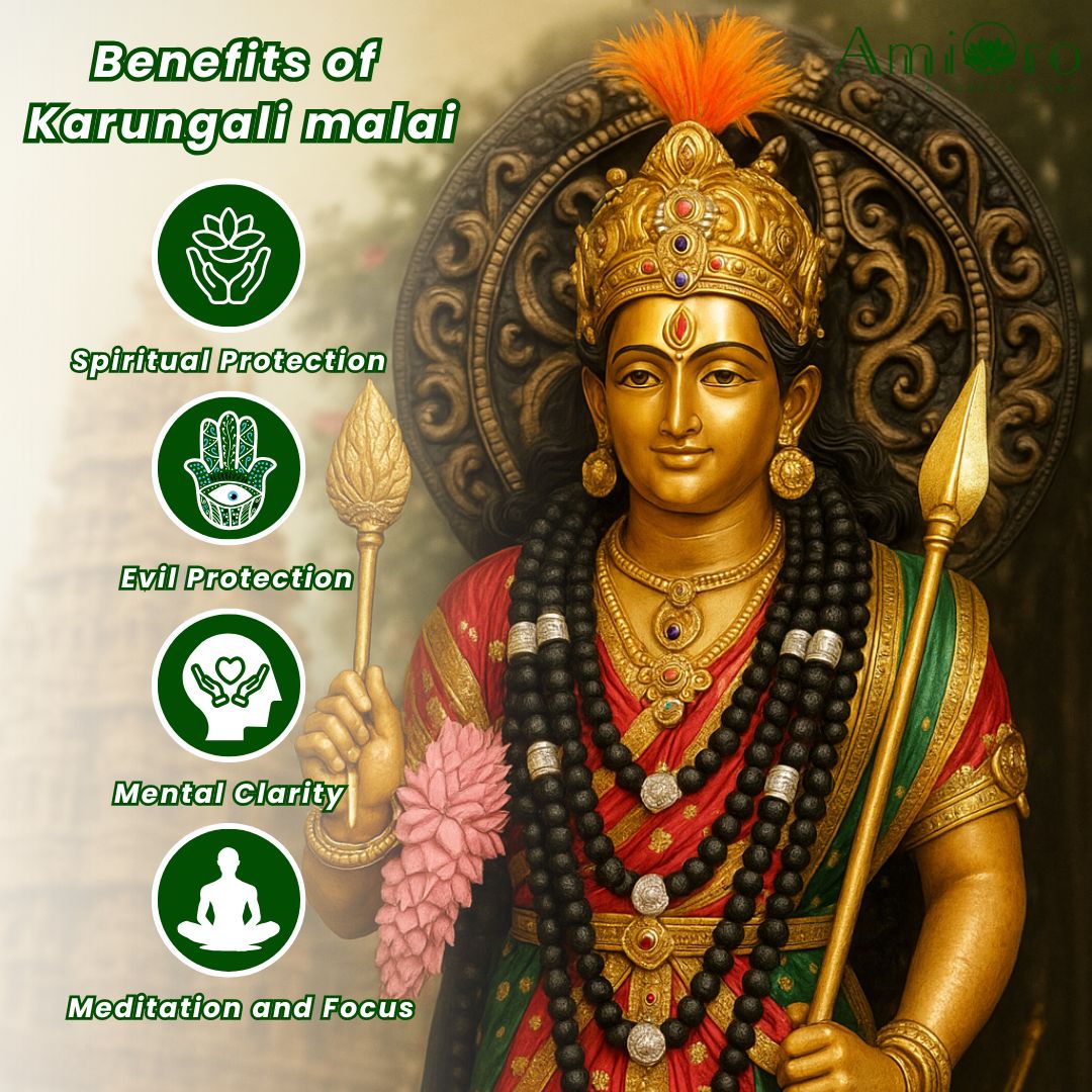 It is believed that the Karungali Mala is well-known as a way to link a devotee to God's energy of the Lord. It is made of meticulously crafted silver-plated beads; every one resonates with vibrations, strengthening your connection to God. The Mala is intended to be used in prayer or meditation and singing mantras, assisting you to stay focused and attain inner peace.