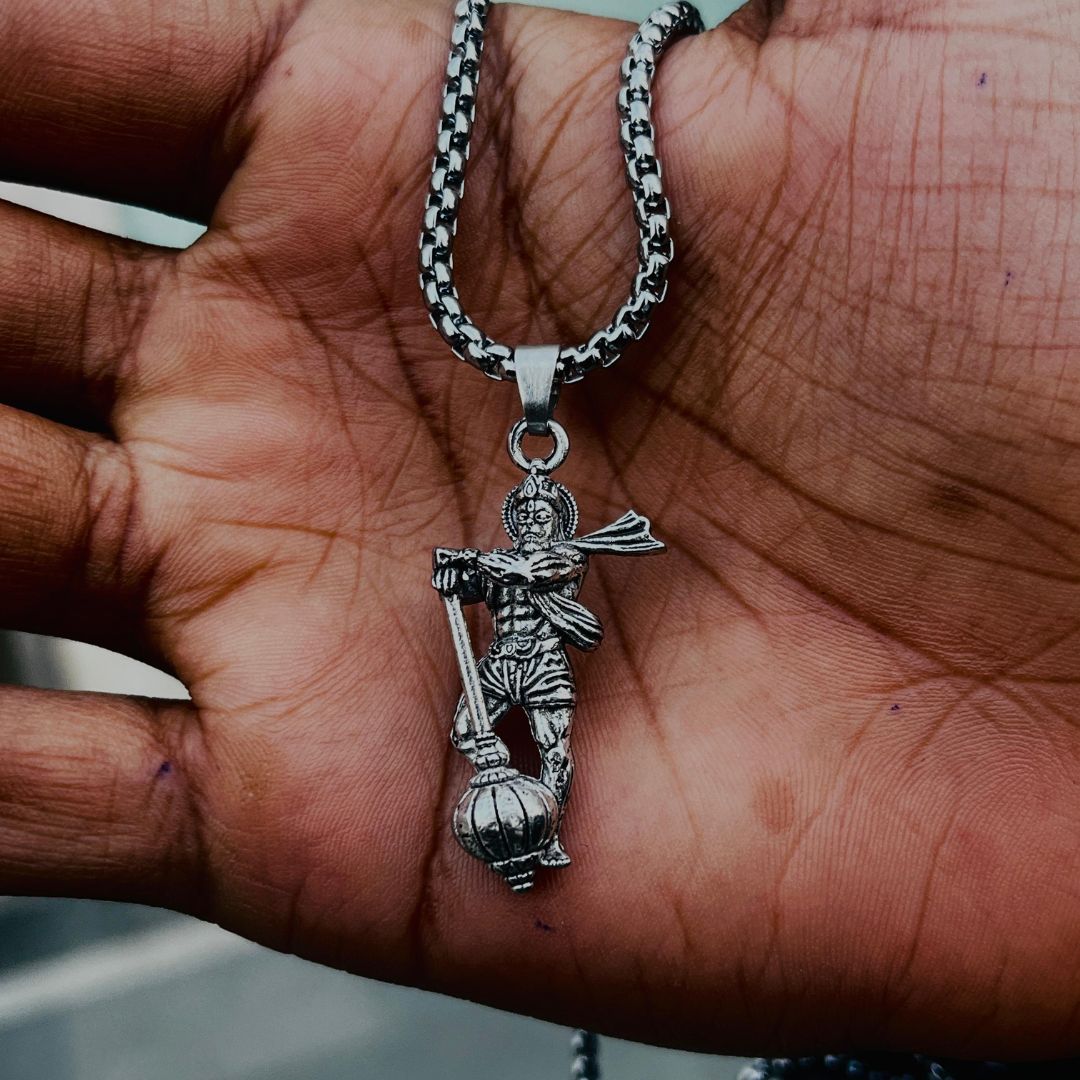 Wear Hanuman's divine energy with a Gada locket and silver chain